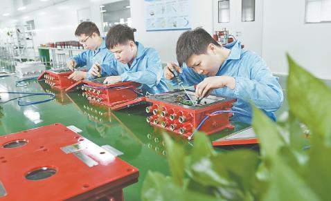 7月17日,位于修武经济技术开发区的河南省煤科院科明机电设备有限公司工人在安装机械手遥控装置。该公司喷浆机生产线项目投资1亿元,经过紧张施工建设,目前项目一期智能装备车间、防爆等新产品车间,仓库及配套设施均已建成,并进入试生产阶段;二期建设已经开始建设。项目正式达产后,年营业收入将达3亿元。