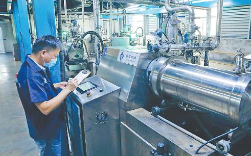 8月23日,焦作集越纳米材料技术有限公司生产车间,技术人员在辅助生产设备进行有序生产。该公司是一家集研发、生产、销售于一体的高新技术企业,专业生产碳纳米管、石墨烯及以其为主要组分的复合导电浆料。该公司大胆开拓,勇于创新,使企业成为河南省首家成功实现将碳纳米管作为导电剂批量应用于3C数码领域的行业先行者。