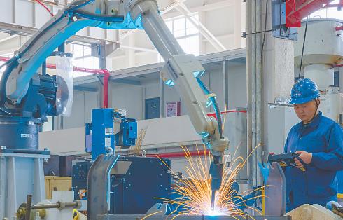 4月9日,位于焦作循环经济产业集聚区的焦作神华重型机械制造有限公司生产车间内,工人在操控机器人焊接产品,加紧赶制订单。进入4月以来,该公司开足马力、加快生产,全力奋战二季度。