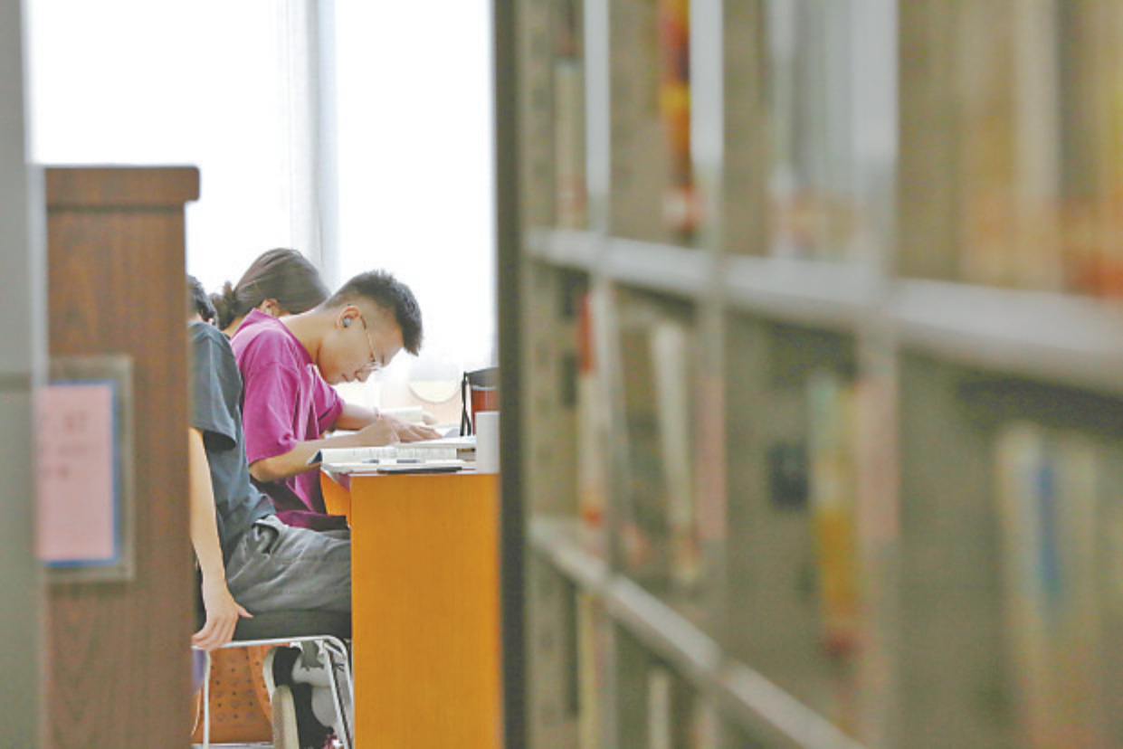 图③ 市民在清凉的环境下自习。