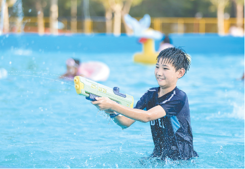 图① 在市龙源湖公园的水上乐园内,孩子们尽情享受清凉时光。