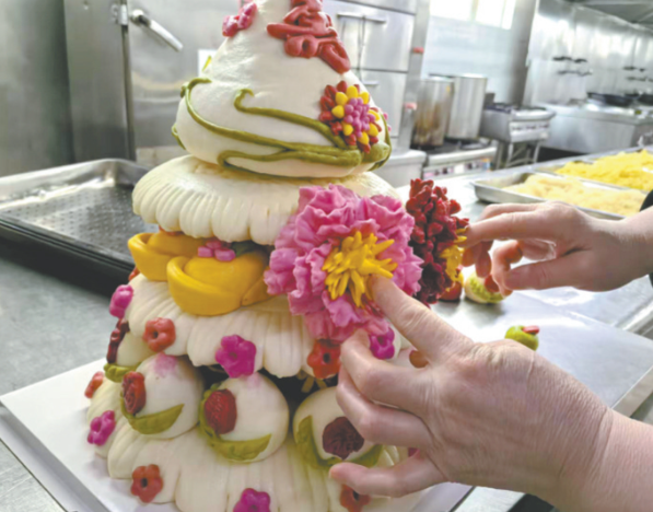 大长垣酒店相关负责人也表示,该店坚持使用优质小麦粉和天然果蔬色素,制作的花馍绿色健康,吸引了大量回头客。开花馍、葫芦糕等特色产品更是成为顾客必订之选。“走亲访友带上传统花馍,既好看又好吃,还能当艺术品欣赏,既增进了情感,又传承了文化,一举多得。”该负责人说。