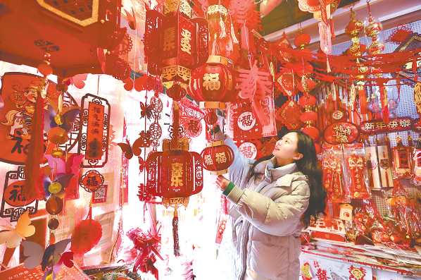 年味儿,更藏在熙熙攘攘的烟火市集里。连日来,市区各大商超、农贸市场、年货市集人气爆棚,市民提着购物袋、推着购物车,穿梭在琳琅满目的商品间,置办年货的脚步匆忙又欢喜。春联、福字、窗花、灯笼依旧是年货市场的“主角”,红彤彤一片,喜庆气息扑面而来。
