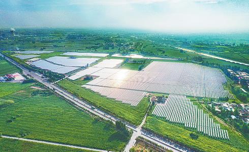 8月29日,在马村区安阳城街道山后村拍摄的光伏电站场景。目前,这里建有焦作中晖50兆瓦光伏电站项目和河南中科田园农业科技有限公司农光互补项目,上部光伏发电,下部种植蔬菜、中草药等,发电种植两不误,为当地经济可持续发展注入了新动能。