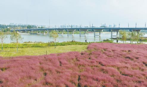 连日来,大沙河南张路西侧的粉黛乱子草长势正盛。在阳光照耀下,大片的粉黛乱子草犹如粉色云霞,游人置身其中仿佛走进了梦幻世界。