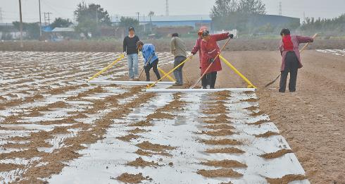 10月26日,孟州市会昌街道东曹村村民在滩区给刚种植的油用牡丹种子覆膜。据了解,今年该街道东曹、中曹、侯庄三个村在滩区发展油用牡丹种苗近500亩,预计年可实现产值700多万元。
