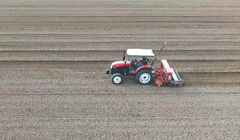 11月5日,在孟州市河阳街道缑村农田里,农民趁着晴好天气,驾驶农机抢播小麦。
