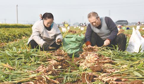11月9日,孟州市大定街道水运村农民在田间抢收小黄姜。初冬时节,孟州市农民抢抓农时加紧收获,到处都是丰收的喜人景象。