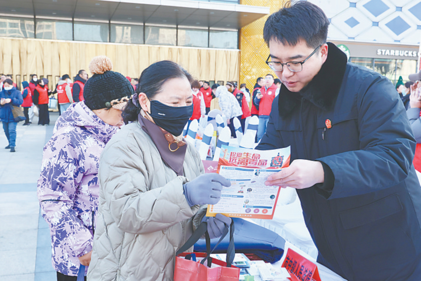 图② “焦作市2025年12・4国家宪法日、宪法宣传周暨全民普法40年成果展”集中宣传活动现场,法院干警为群众讲解禁毒法律法规。