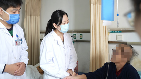 首都医科大学附属北京中医医院肿瘤科主任医师许炜茹(中),通过中医“望闻问切”诊疗手段了解患者体质状态。