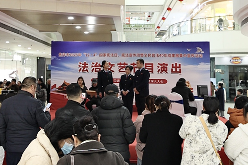 “焦作市2025年12・4 国家宪法日、宪法宣传周暨全民普法40年成果展”集中宣传活动现场,市民在观看法治文艺节目演出。