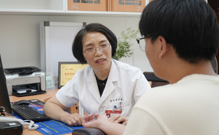 焦作市中青年名中医、焦作市中医院睡眠医学中心主任、脑病科二区主任谢静红为患者把脉问诊。