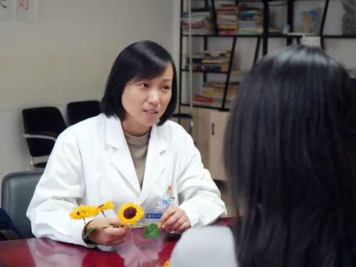 市第四人民医院精神二科主治医师牛莉莉为学习障碍患者进行心理辅导。