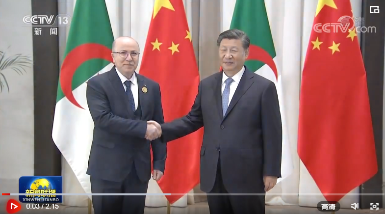 当地时间12月9日晚,国家主席习近平在利雅得会见阿尔及利亚总理阿卜杜拉赫曼。