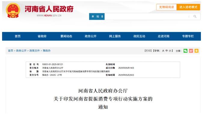河南省提振消费专项行动实施方案