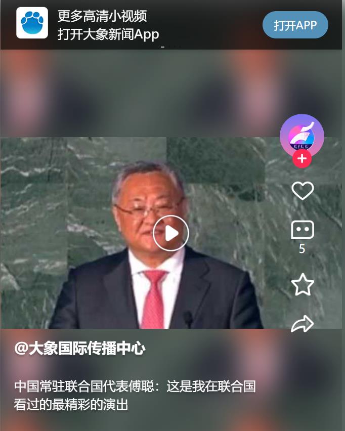 中国常驻联合国代表傅聪:这是我在联合国看过的最精彩的演出