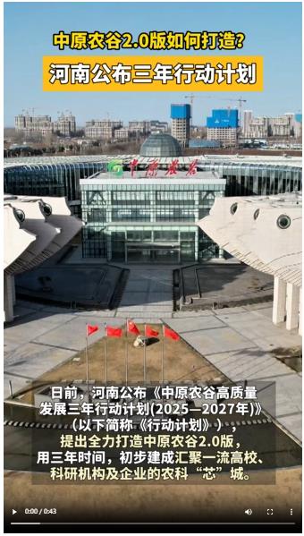 日前,河南公布《中原农谷高质量发展三年行动计划(2025—2027年)》(以下简称《行动计划》),明确提出,建设国家级、国际化农业科技创新高地,打造中原农谷2.0版,用三年时间,初步建成汇聚一流高校、科研机构及企业的农科“芯”城。