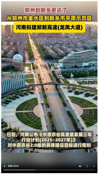 拟建郑新高速(龙凤大道),具体位置位于S101和G107复线之间,初步拟订方案路线起点位于郑州市金水区,终点位于新乡市平原示范区,路线全长约18公里,其中郑州境7.5公里、新乡境10.5公里;拟建农谷大道,按照市政道路建设标准,总长约50公里。