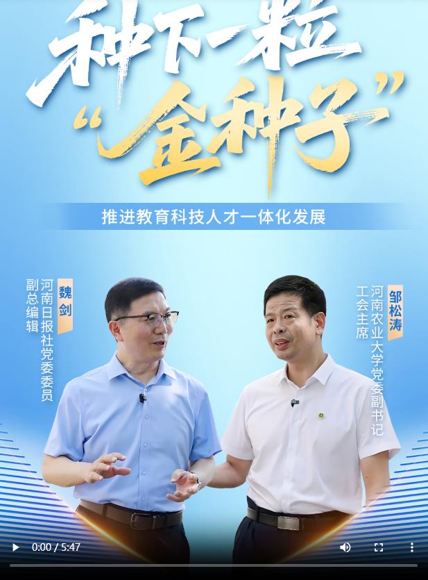 本期“总编有约·‘两高四着力’大家谈”,邀请河南农业大学校长、中国工程院院士周卫,与河南日报社党委委员、副总编辑魏剑一起,围绕推进教育科技人才一体化发展这一话题进行交流。