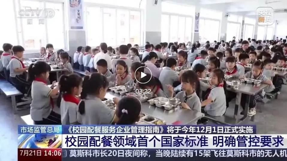 记者今天(21日)从市场监管总局了解到,国家首个专门针对校园配餐的国家标准——《校园配餐服务企业管理指南》已于近日发布,将于2025年12月1日正式实施。该指南适用于为中小学、幼儿园学生提供学生餐制作及配送服务的校园配餐服务企业。