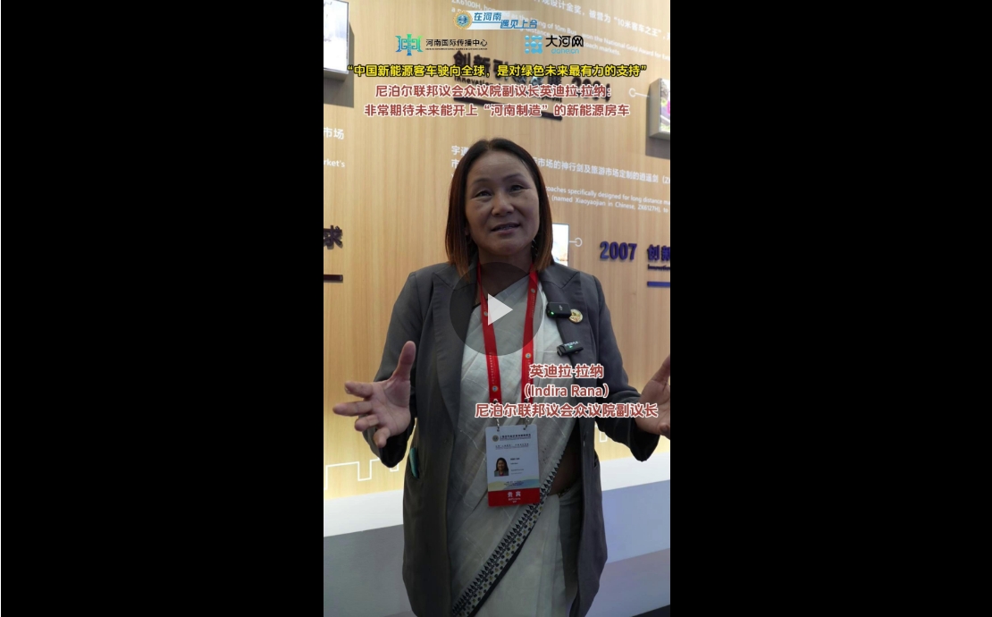 尼泊尔联邦议会众议院副议长英迪拉·拉纳(Indira Rana)在接受记者采访时表示,宇通新能源客车以其先进的技术和环保理念给她留下了深刻印象。她特别期待未来能够驾驶一辆“河南制造”的新能源房车,体验智能环保与舒适便捷的绿色出行方式。此外,英迪拉·拉纳还称赞河南不仅在推动中国绿色转型方面发挥了重要作用,更为全球环保事业作出了积极贡献。