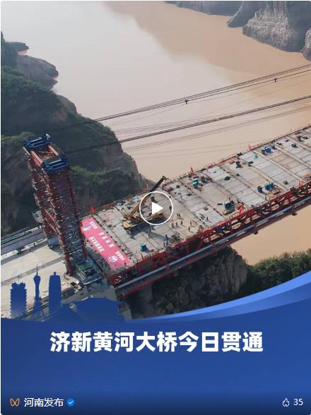 7月31日,随着最后一片桥面板吊装完成,由中铁四局承建的世界首座地锚式回转缆悬索桥、河南省最大跨径桥梁——济(源)新(安)黄河大桥实现全桥贯通,为下一步大桥通车奠定坚实基础。