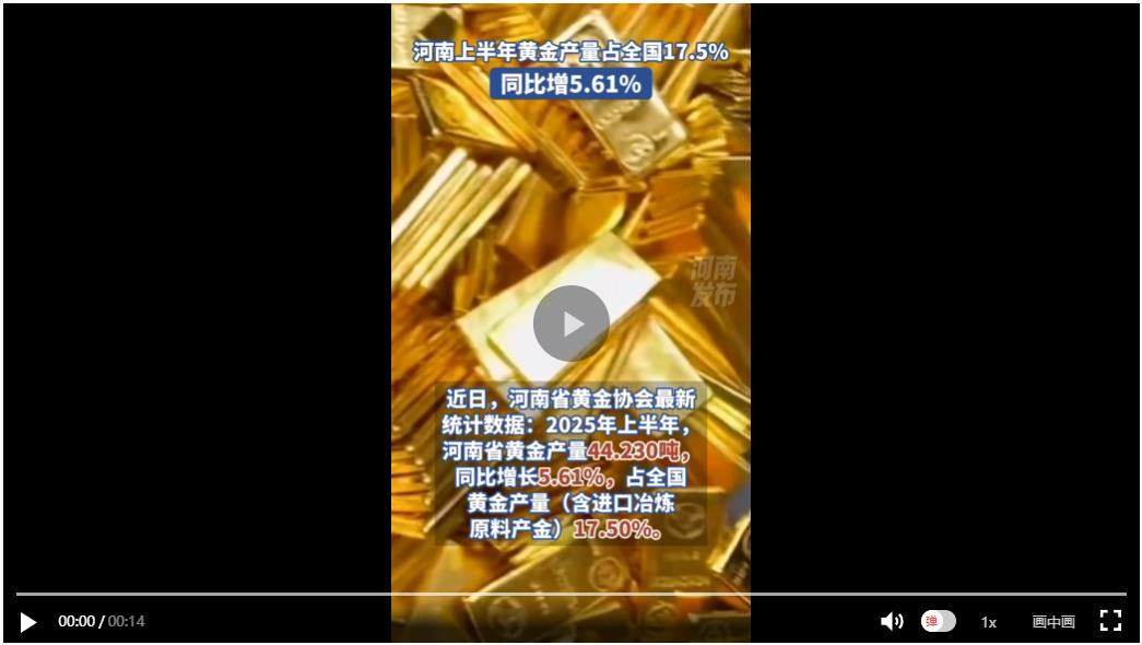 河南上半年黄金产量占全国17.5%,同比增5.61%