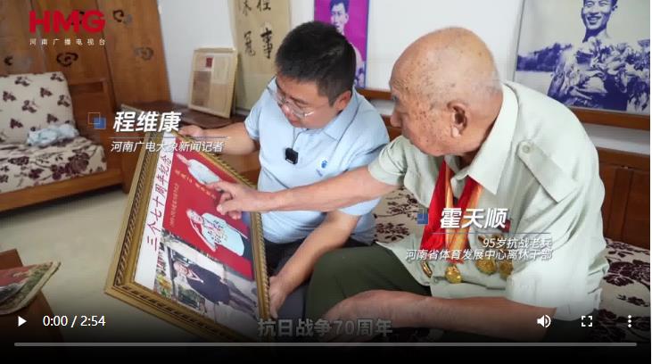 95岁的霍天顺抚摸着纪念章,