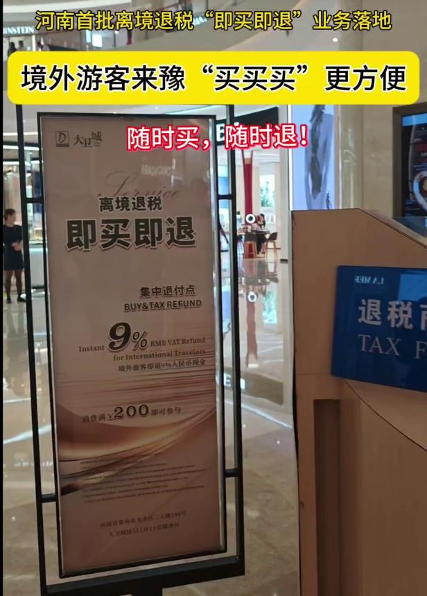 今年4月,国家进一步优化离境退税政策,推出“即买即退”便利措施并向全国推广。“离境退税‘即买即退’指境外旅客在指定商店购买退税商品时,通过信用卡授权担保当场领取退税款,离境时再经海关核验后完成退税流程的便利化服务模式。”国家税务总局河南省税务局相关负责人介绍,“离境退税”的亮点在于“随时买、随时退”,境外旅客在购物环节就能拿到退税款,更加直观地感受到退税带来的实惠,可以进一步激发旅客二次消费的意愿,有助于提升城市的国际知名度和吸引力。