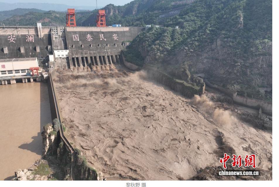 9月8日,河南三门峡水利枢纽投入今年第三次敞泄运用。受近期降雨影响,黄河中游泾渭河出现明显涨水过程,按照黄河水利委员会调度指令,9月7日15时,该水利枢纽按照3000立方米每秒控泄直至敞泄,投入汛期调水调沙运用。(无人机照片)