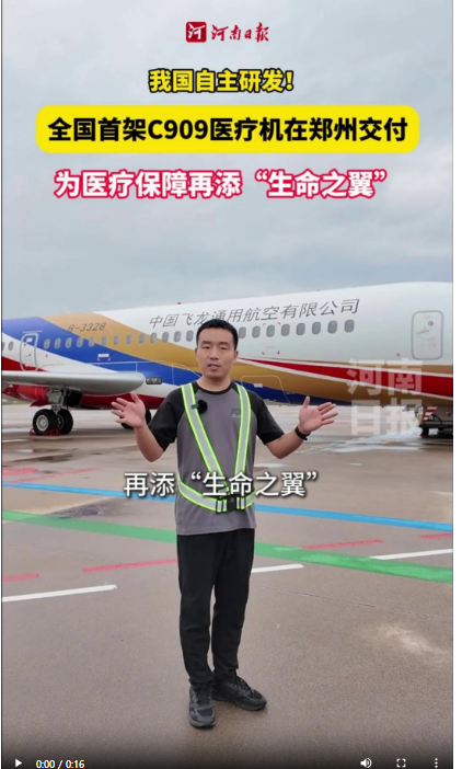 在9月9日的2025中国商飞客户大会上,中国商飞向中豫航空集团移交全国首架C909医疗机的“金钥匙”。随后,这架飞机将按计划入编中豫航空集团所属的中国飞龙,为资深专业航空应急救援“龙头”企业再添“生命之翼”。