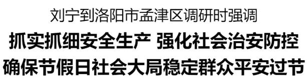 10月1日下午,省委书记刘宁到洛阳市孟津区,调研节日期间安全生产、社会治安等工作。