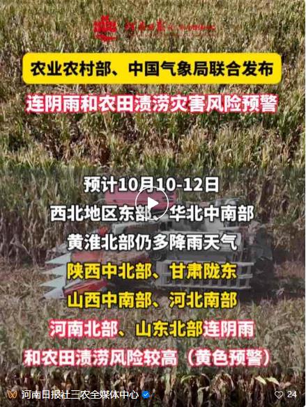 郭天财:据气象部门提供的资料,进入9月份以来,全省连续出现8次大范围明显降水过程,平均降水量超过300毫米,较常年同期偏多近3倍;阴雨日数较常年同期偏多10天左右,均为1961年以来同期最多。另据气象部门预报,未来10天左右华西秋雨带北移,我省多地降水仍偏多,对秋作物收获腾茬、麦田适期整地播种带来极大困难,收秋种麦茬口衔接偏紧,将导致麦播时间拉长,晚播面积增大,对小麦生产带来不利影响。