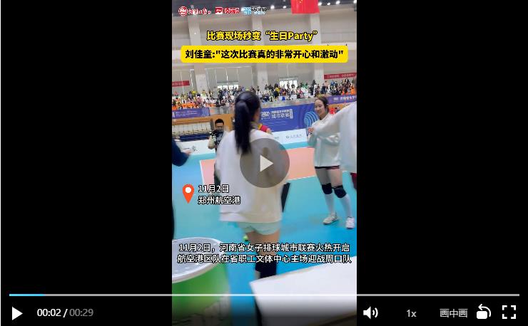 比赛之余还有一件让人意想不到的事情:“祝你生日快乐!”在全场的祝福声中,本场赛事迎来了最后一个惊喜。航空港区队女排队员刘佳童迎来了17岁生日,“完全不知道,真的很感动!感谢航空港区的工作人员为我准备的惊喜。”这一刻,赛场瞬间被爱意包围。