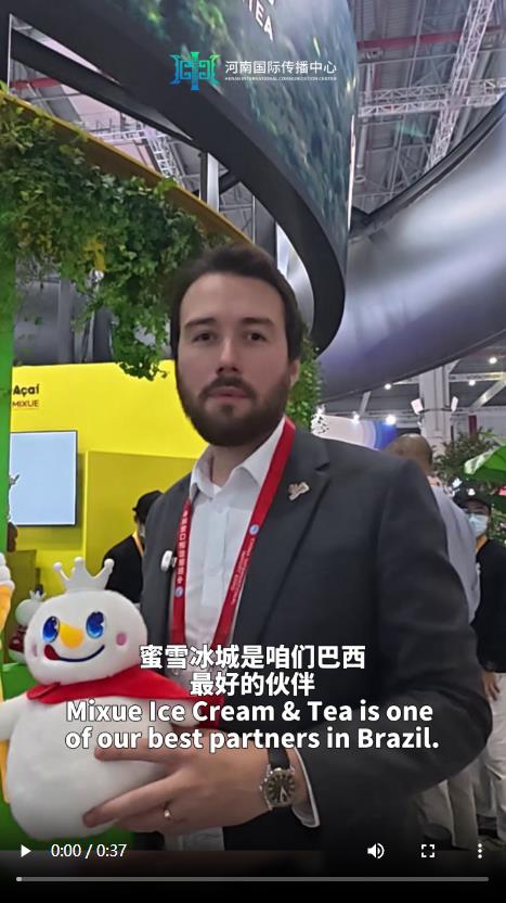 第八届中国国际进口博览会今日继续进行。在巴西展区,一处“蜜雪冰城”品牌体验点吸引了众多中外参观者。巴西出口投资促进局亚太区CEO维克多向河南国际传播中心 记者介绍,蜜雪冰城从巴西进口了巴西莓等多种原料,所推出的产品深受消费者喜爱。他说,“蜜雪冰城是巴西非常重要的合作伙伴,期待未来双方合作进一步深化。”
