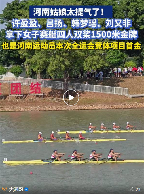 11月10日,在刚刚结束的第十五届全运会竞技体育赛艇女子四人双桨项目决赛中,我省运动员许盈盈、吕扬、韩梦瑶、刘又非以优异的成绩获得金牌,这是河南运动员在大湾区全运会竞技体育项目获得的首枚金牌!