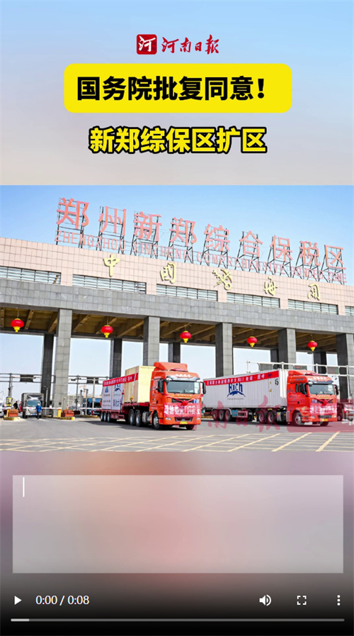 11月10日,记者从郑州航空港经济综合实验区管委会获悉,国务院日前已正式批复,同意郑州新郑综合保税区(以下简称“新郑综保区”)扩区,该区成为中部地区首个成功扩区的综合保税区。