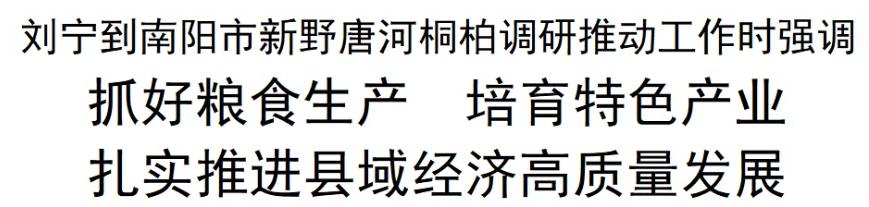 2月1日、2日,省委书记刘宁先后到南阳市新野县、唐河县、桐柏县,调研推动冬小麦田间管理、县域特色产业、生态环境保护等工作,强调要深入贯彻习近平总书记在河南考察时重要讲话精神,全面落实党的二十届四中全会精神,按照党中央要求和省委部署,毫不放松抓好粮食生产,因地制宜培育壮大县域特色产业,统筹推进高质量发展和高水平保护,不断塑造发展新动能新优势。