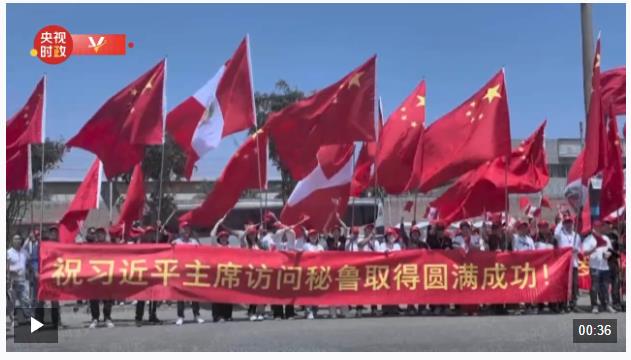 当地时间11月14日,习近平主席乘车从机场赴下榻饭店途中,华侨华人、中资机构、留学生代表和当地民众在道路两旁夹道欢迎,挥舞中秘两国国旗,敲锣打鼓,舞龙舞狮,热烈欢迎习近平到访。