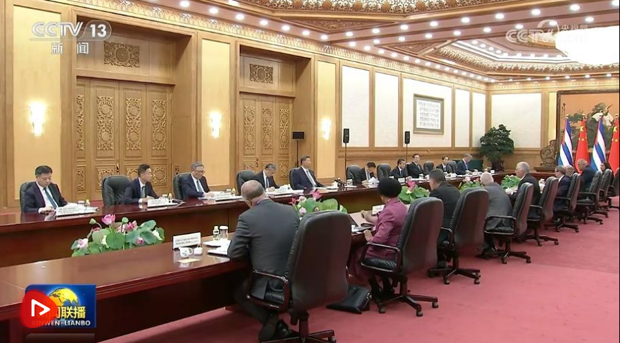 9月4日上午,中共中央总书记、国家主席习近平在北京人民大会堂会见来华出席纪念中国人民抗日战争暨世界反法西斯战争胜利80周年活动的古巴共产党中央委员会第一书记、古巴国家主席迪亚斯-卡内尔。