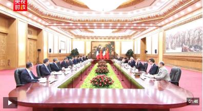 12月4日上午,国家主席习近平在北京人民大会堂同来华进行国事访问的法国总统马克龙举行会谈。
