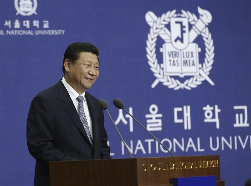 2014年7月4日,国家主席习近平在韩国国立首尔大学发表题为《共创中韩合作未来 同襄亚洲振兴繁荣》的重要演讲。新华社记者 兰红光 摄