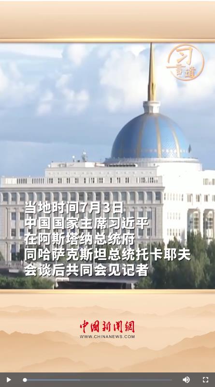当地时间7月3日,中国国家主席习近平在阿斯塔纳总统府同哈萨克斯坦总统托卡耶夫会谈后共同会见记者。“我们一致认为,中哈两国都处在各自发展振兴的关键阶段,是现代化道路上的同路人。”习近平用“同路人”这一表述定位两国关系。