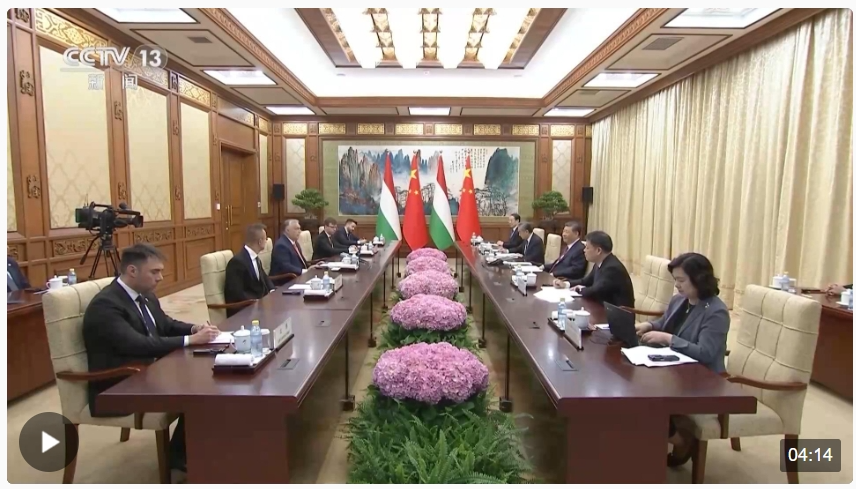 习近平指出,两个月前,我对匈牙利进行成功国事访问,我们宣布将中匈关系提升为新时代全天候全面战略伙伴关系,为今年两国建交75周年赋予新的历史意义,也为中匈关系高水平发展注入强劲动力。下周,中国共产党二十届三中全会将在北京召开,中国将进一步全面深化改革,推动高质量发展和高水平对外开放。这将为中匈合作提供新机遇、注入新动能。双方要保持高层交往,深化政治互信,密切战略沟通协作,继续坚定相互支持,加强各领域务实合作,高质量共建“一带一路”,持续丰富中匈新时代全天候全面战略伙伴关系内涵,更好造福人民。