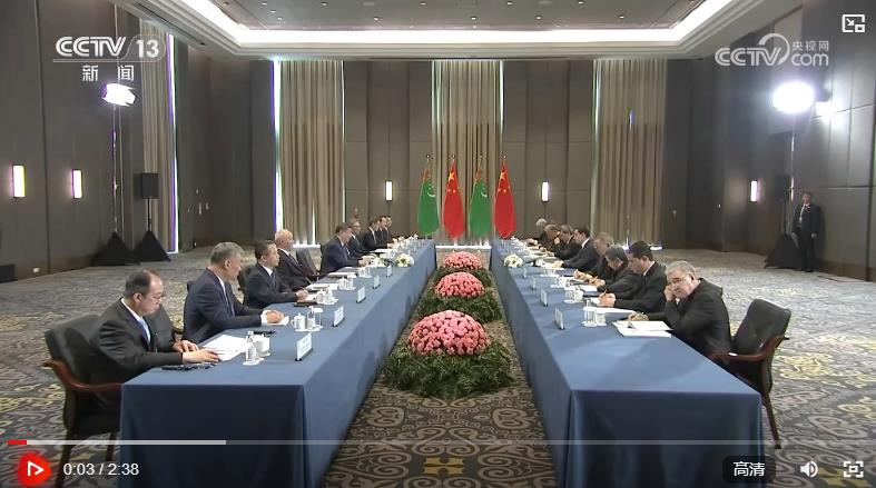 当地时间6月17日上午,国家主席习近平在阿斯塔纳出席第二届中国—中亚峰会期间会见土库曼斯坦总统别尔德穆哈梅多夫。