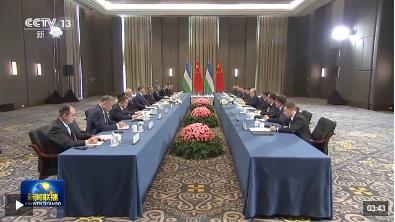 当地时间6月17日上午,国家主席习近平在阿斯塔纳出席第二届中国-中亚峰会期间会见乌兹别克斯坦总统米尔济约耶夫。