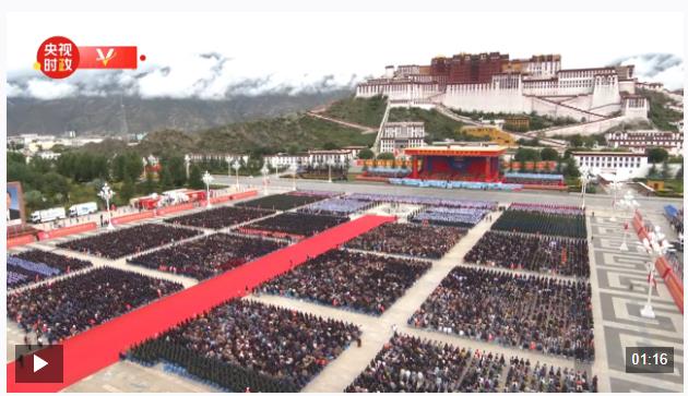 21日上午,习近平总书记在拉萨市布达拉宫广场出席西藏自治区成立60周年庆祝大会,同西藏各族各界干部群众约2万人共同欢聚,热烈庆祝西藏自治区成立60周年。
