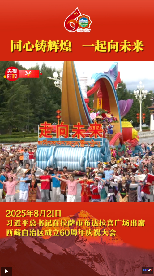 21日上午,习近平总书记在拉萨市布达拉宫广场出席西藏自治区成立60周年庆祝大会,同西藏各族各界干部群众约2万人共同欢聚,热烈庆祝西藏自治区成立60周年。