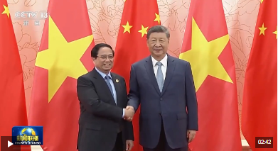 8月31日下午,国家主席习近平在天津迎宾馆会见来华出席2025年上海合作组织峰会的越南总理范明政。