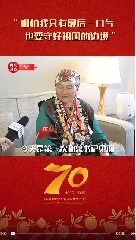 “人民楷模”国家荣誉称号获得者布茹玛汗·毛勒朵表达了她最想对总书记说的话:“我从19岁开始守边护边,哪怕我只有最后一口气,也要守好祖国的边境。”